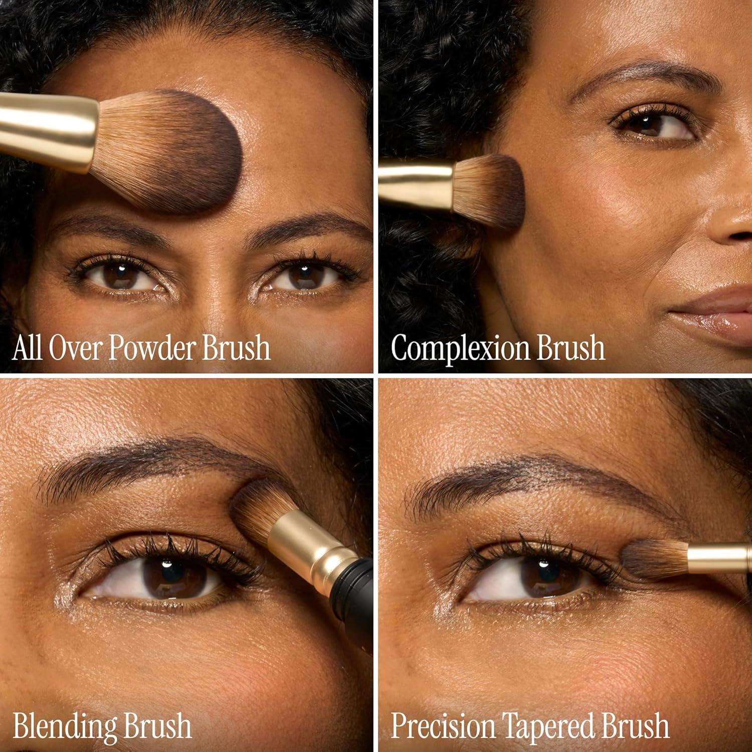 HOW TO USE: Swap brush heads to suit your look. Use the Powder Brush for all-over coverage, the Complexion Brush for blush or foundation, the Blending Brush for shadow, and the Precision Tapered Brush for defining your lids.