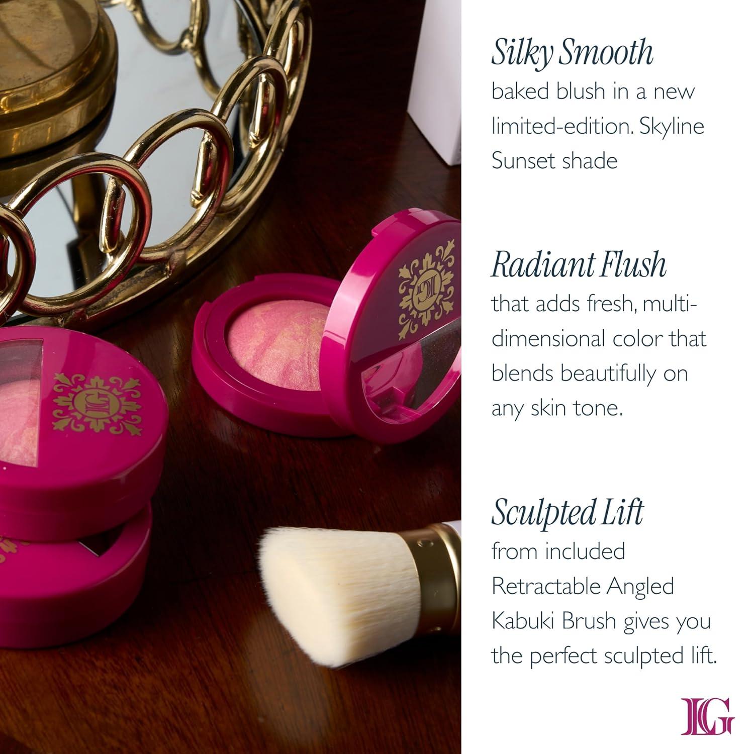 LIMITED EDITION SKYLINE SUNSET: Our limited-edition marbleized blush has a satin finish and bright pink, ginger and melon tones to evoke the incredible sunsets in our NYC hometown! Includes an exclusive Retractable Angled Kabuki Brush too!