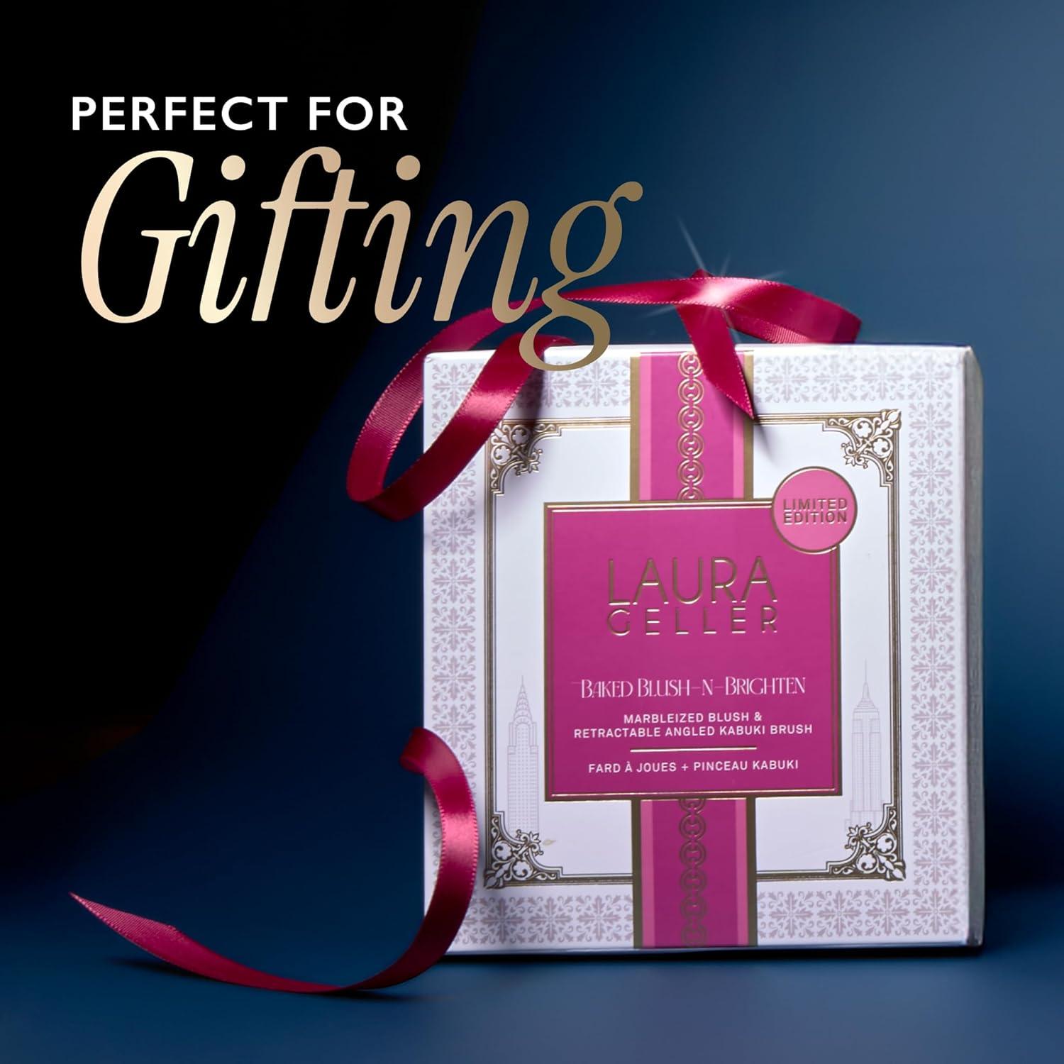 LAURA GELLER NEW YORK Limited-Edition Baked Blush-n-Brighten Marbleized Blush with Retractable Kabuki Brush Boxed Set | Skyline Sunset Pink Shade with Makeup Brush - Amazon Exclusive